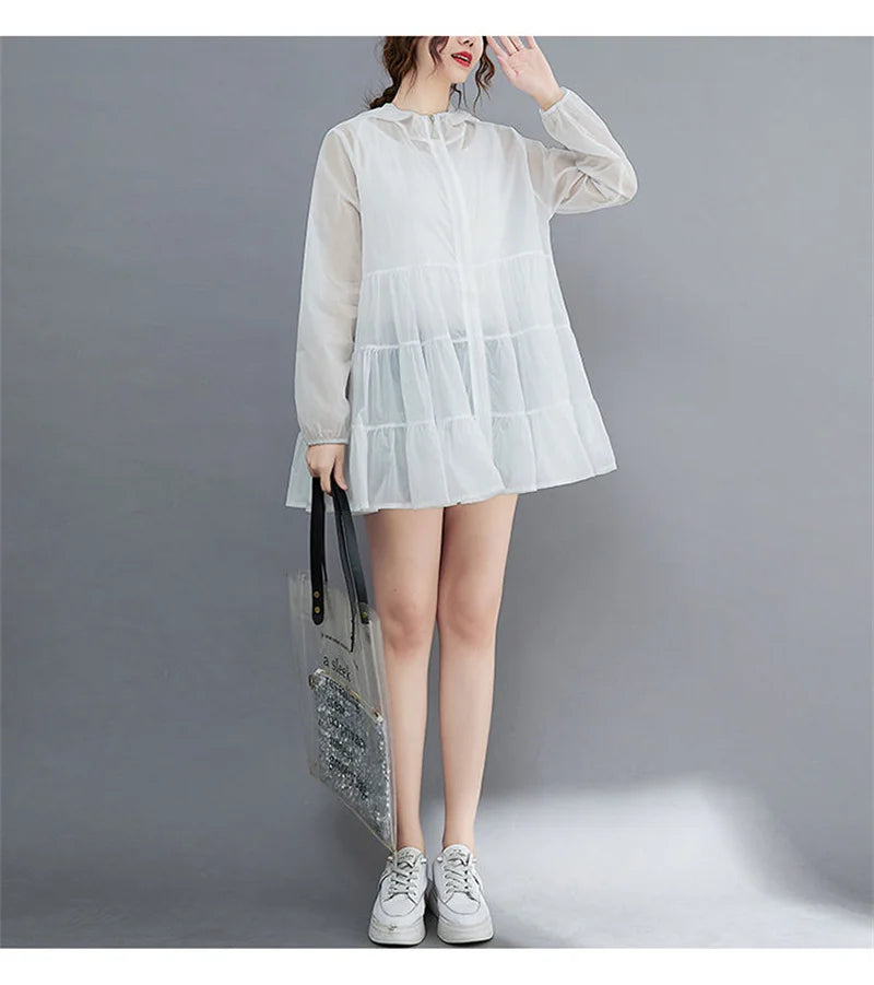 2023 Summer Thin Windbreaker New Sunscreen Clothes Mid-Long Female Breathable Shirt Oversize Jacket With Hooded Female Outerwear