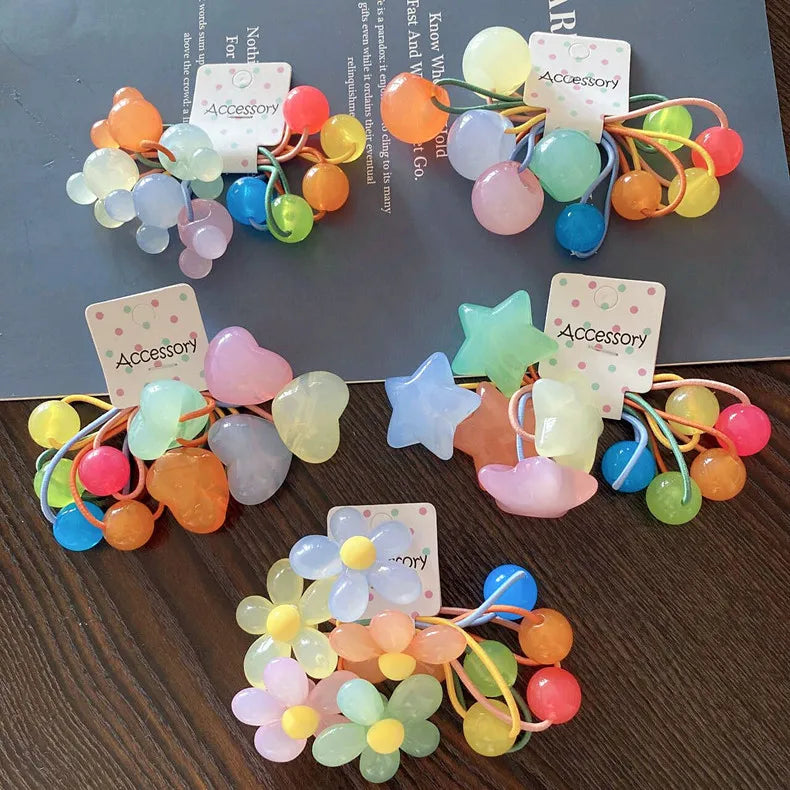 5PCS Flowers Stars Princess Color Headwear Kids Elastic Hair Bands Children Hair Ties Ropes Girls Accessories Baby Headdress