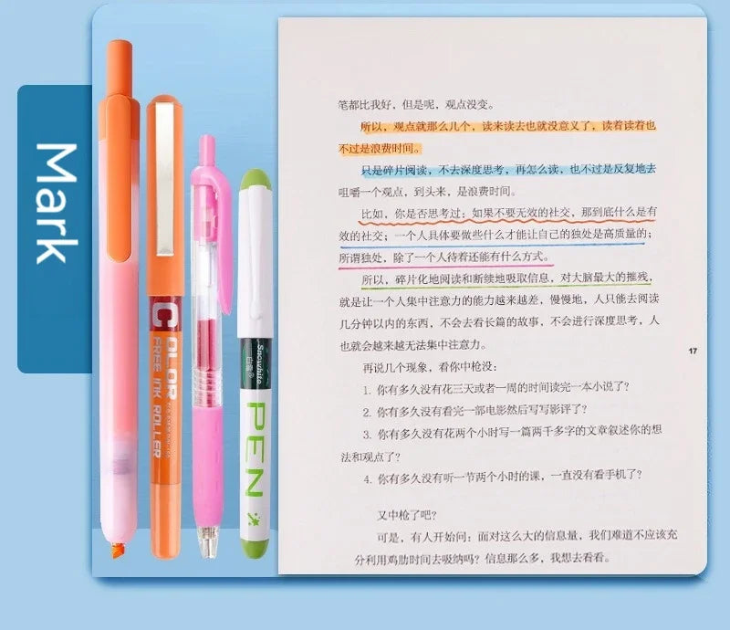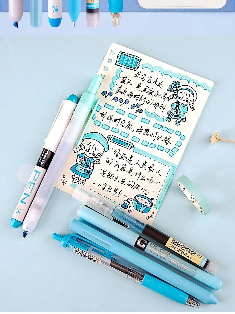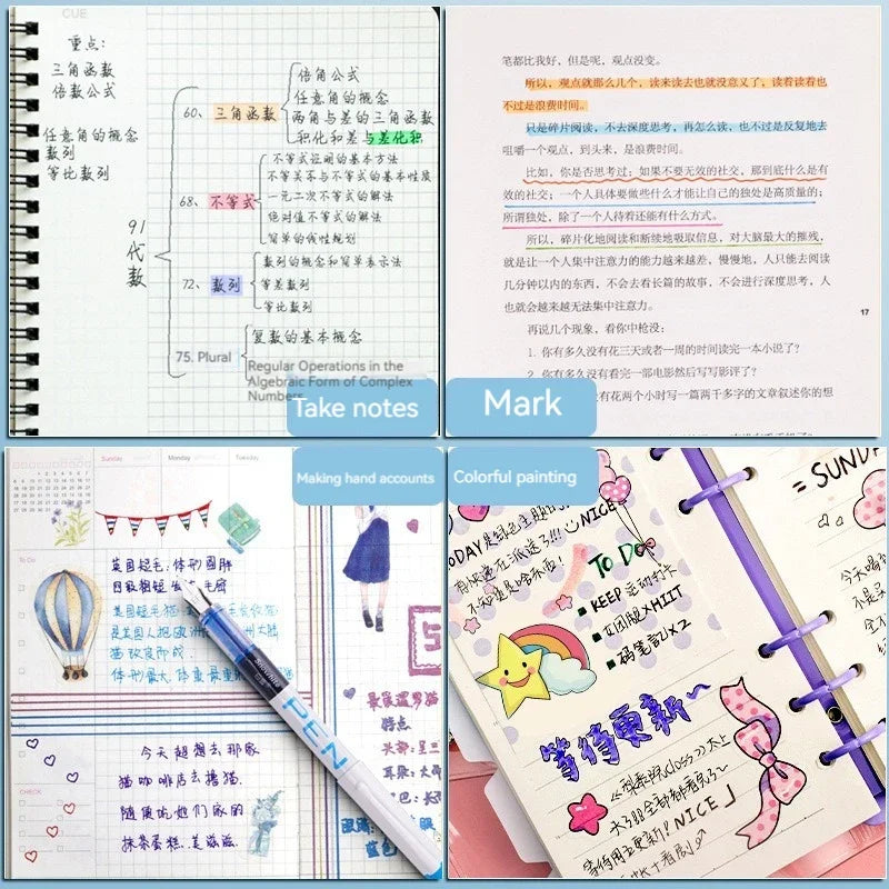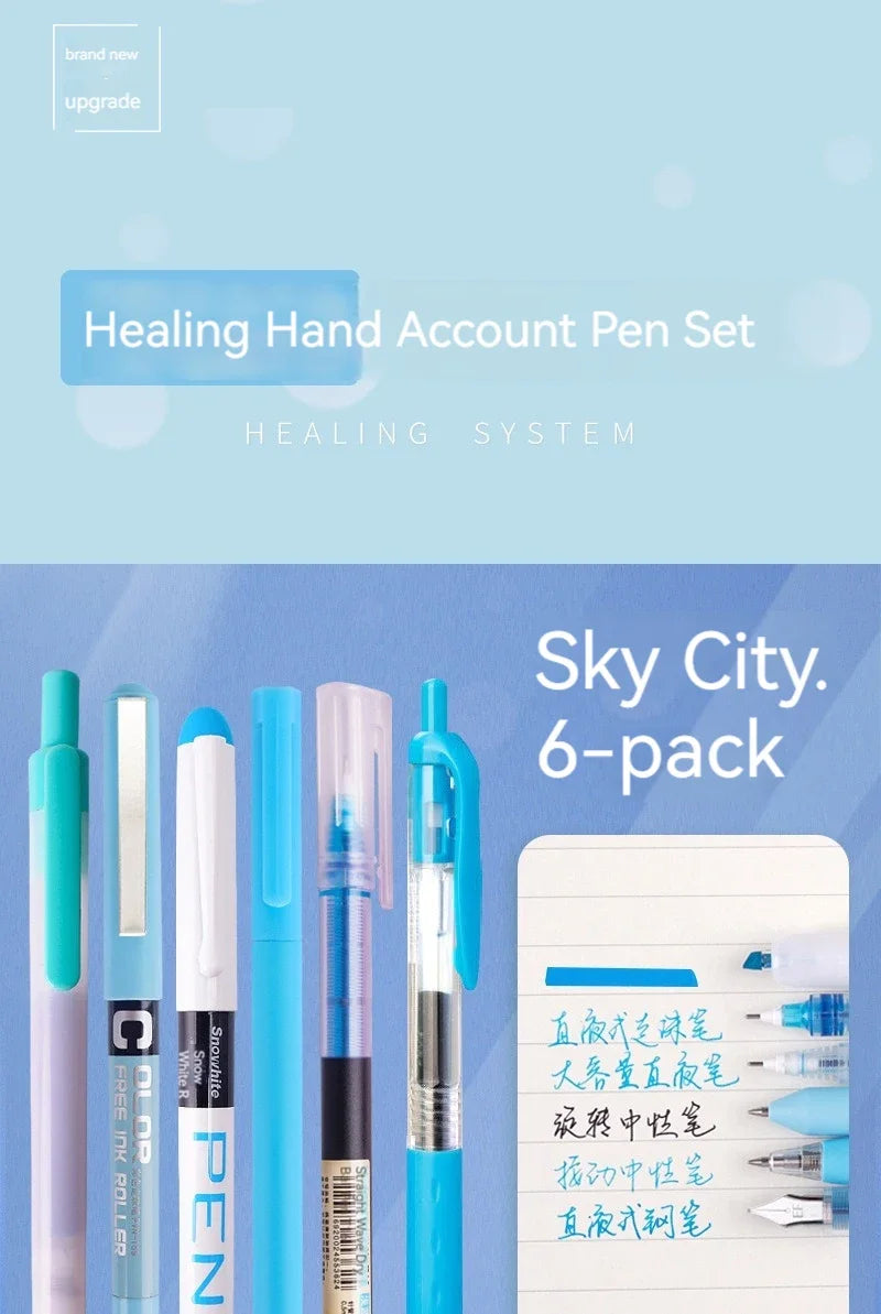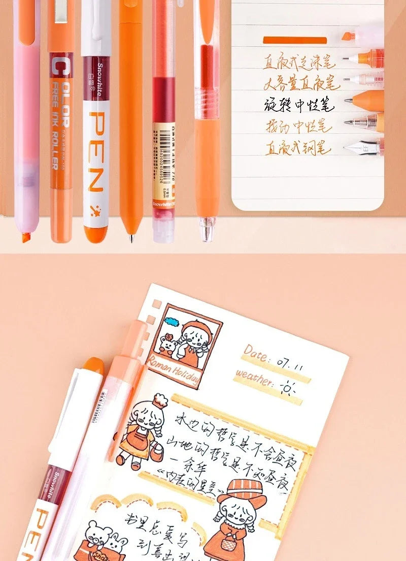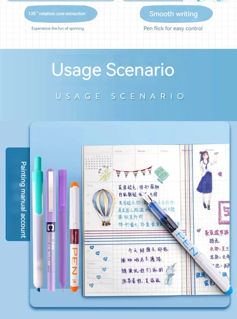 6pcs/set Roller Pen Purple / Pink / Green Color Ink Straight Liquid Gel Pen Ballpoint Pen for School Office Stationery Kawaii