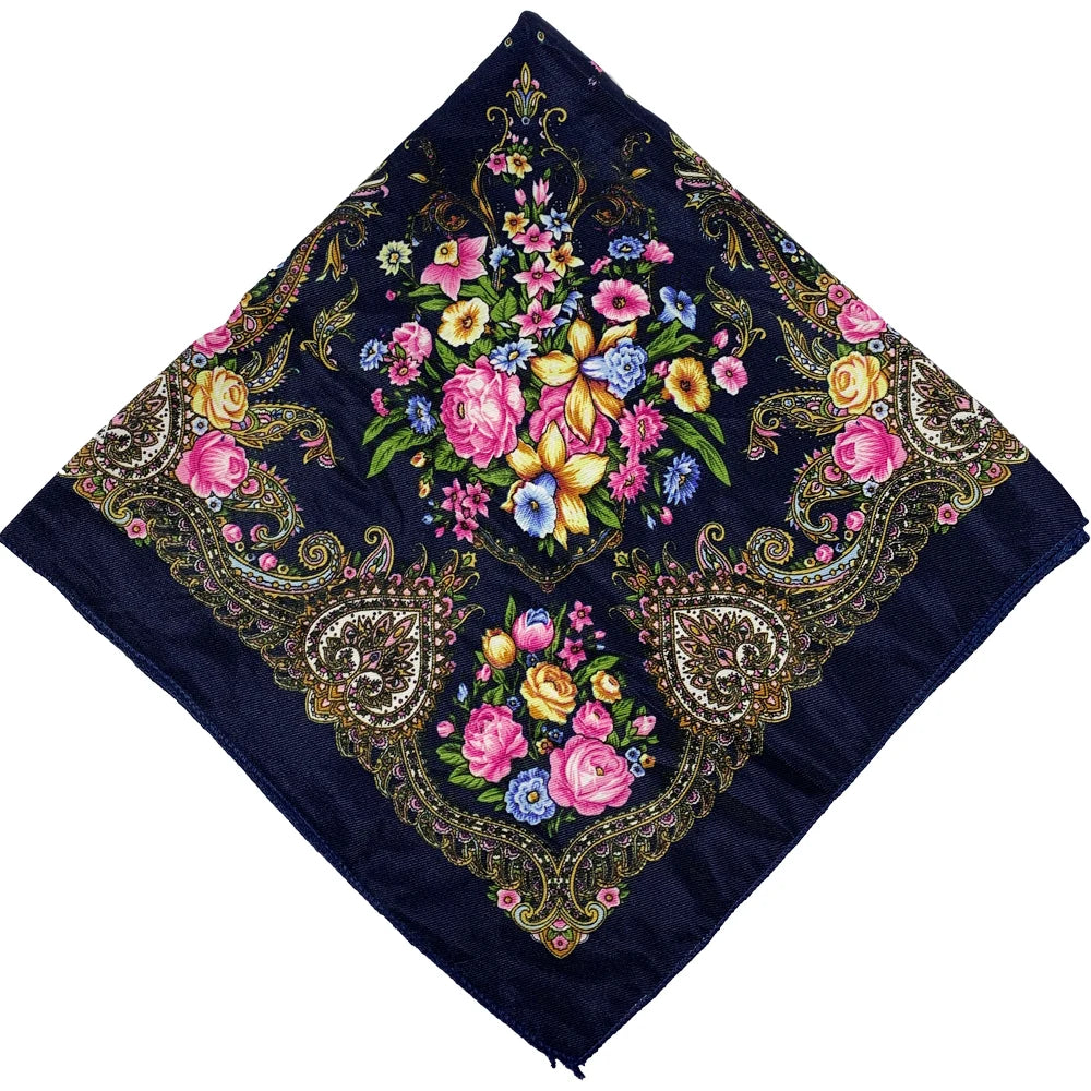 70*70cm Russian Square Scarf Women Luxury Floral Print Bandana Headband Scraves Babushka Head Wraps