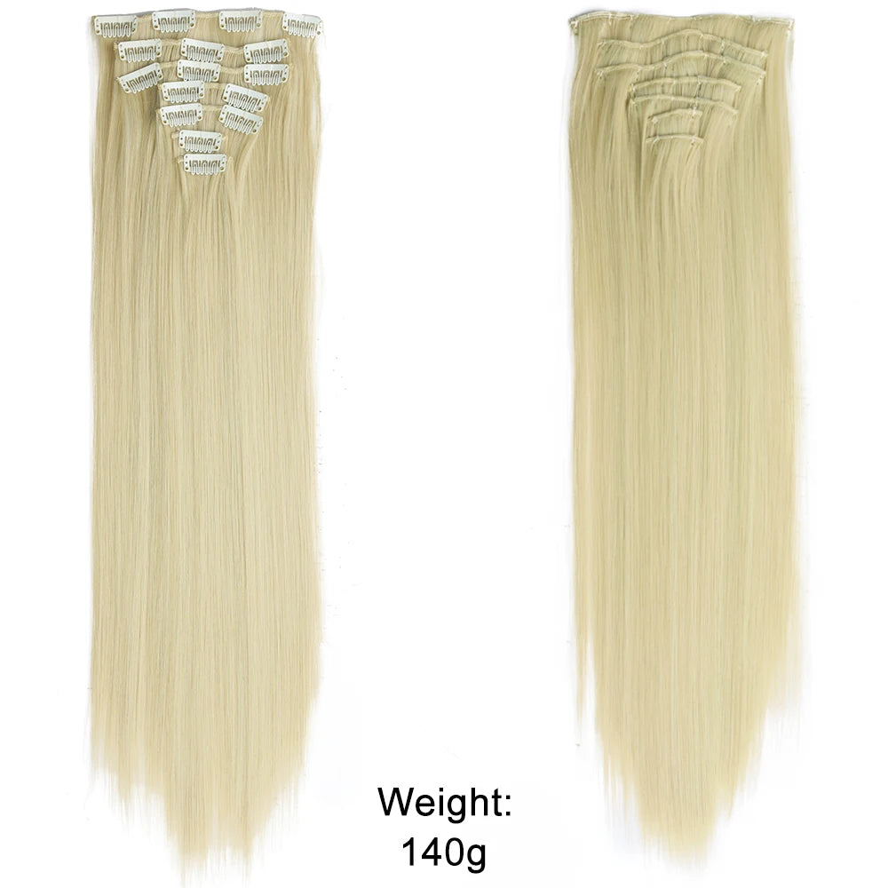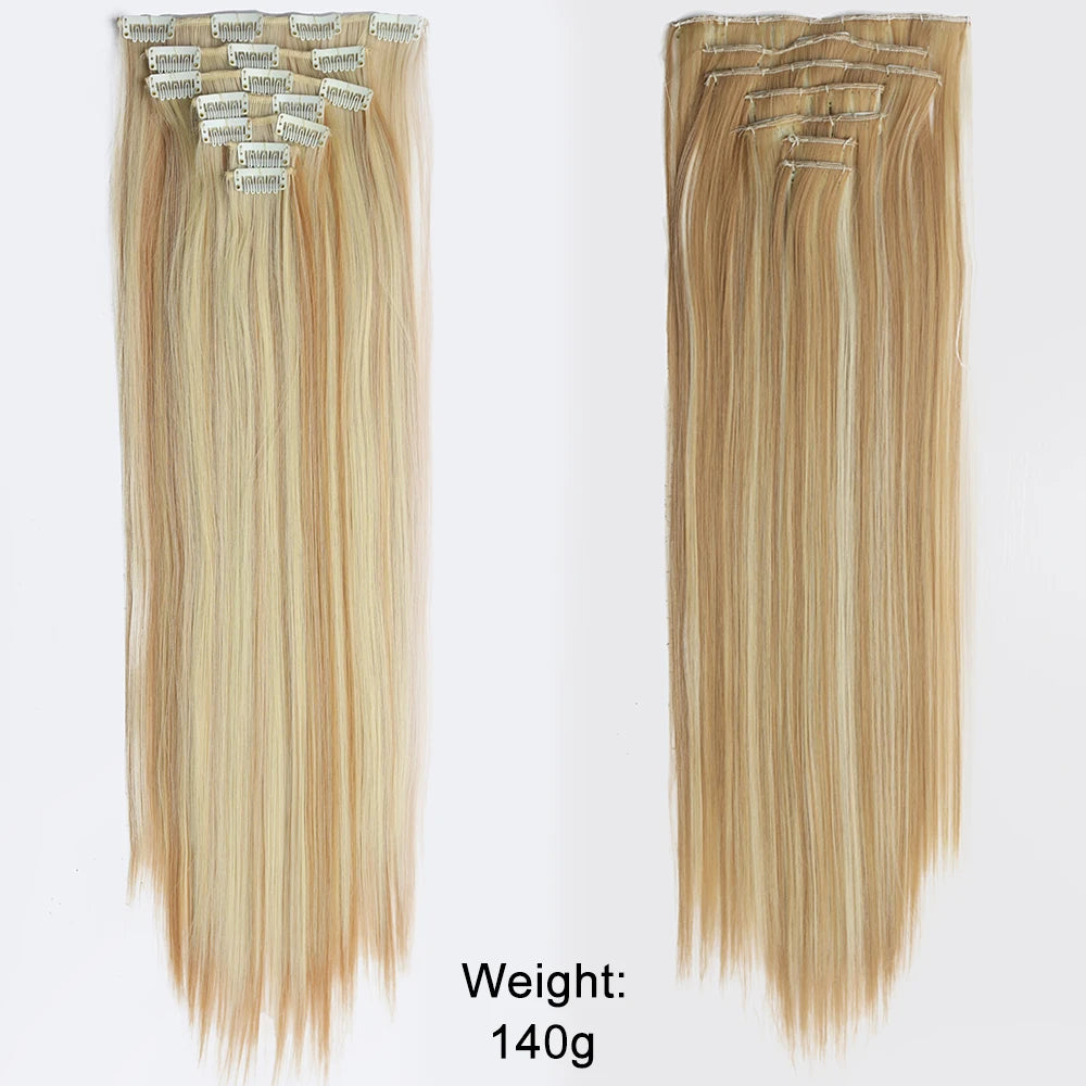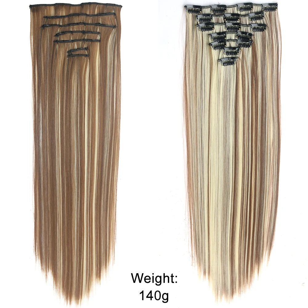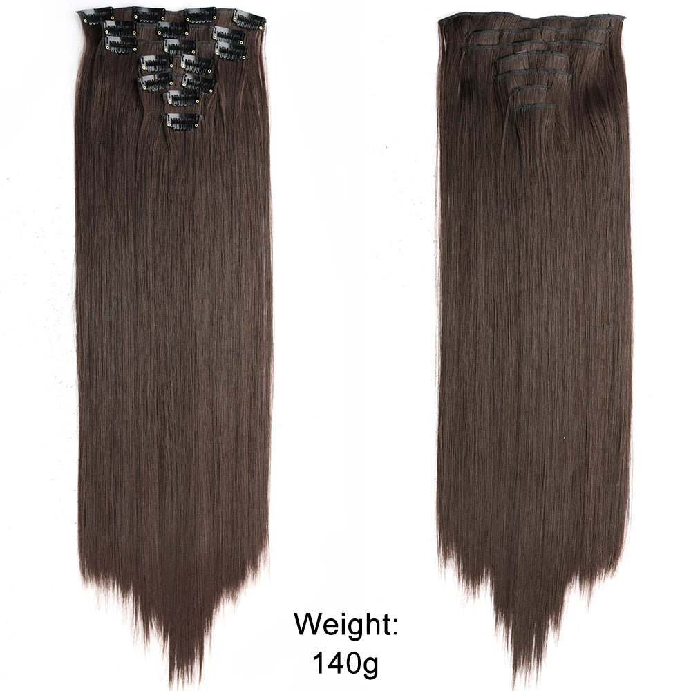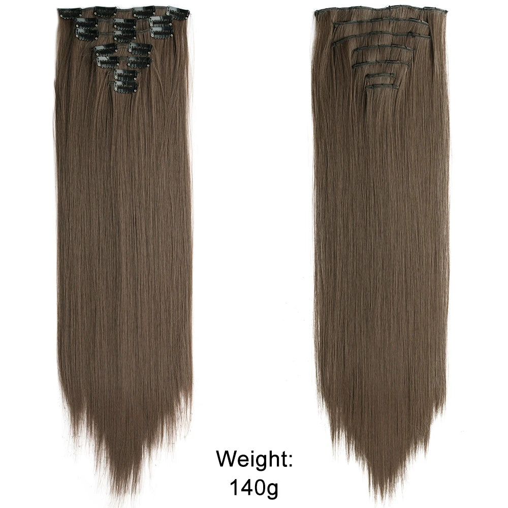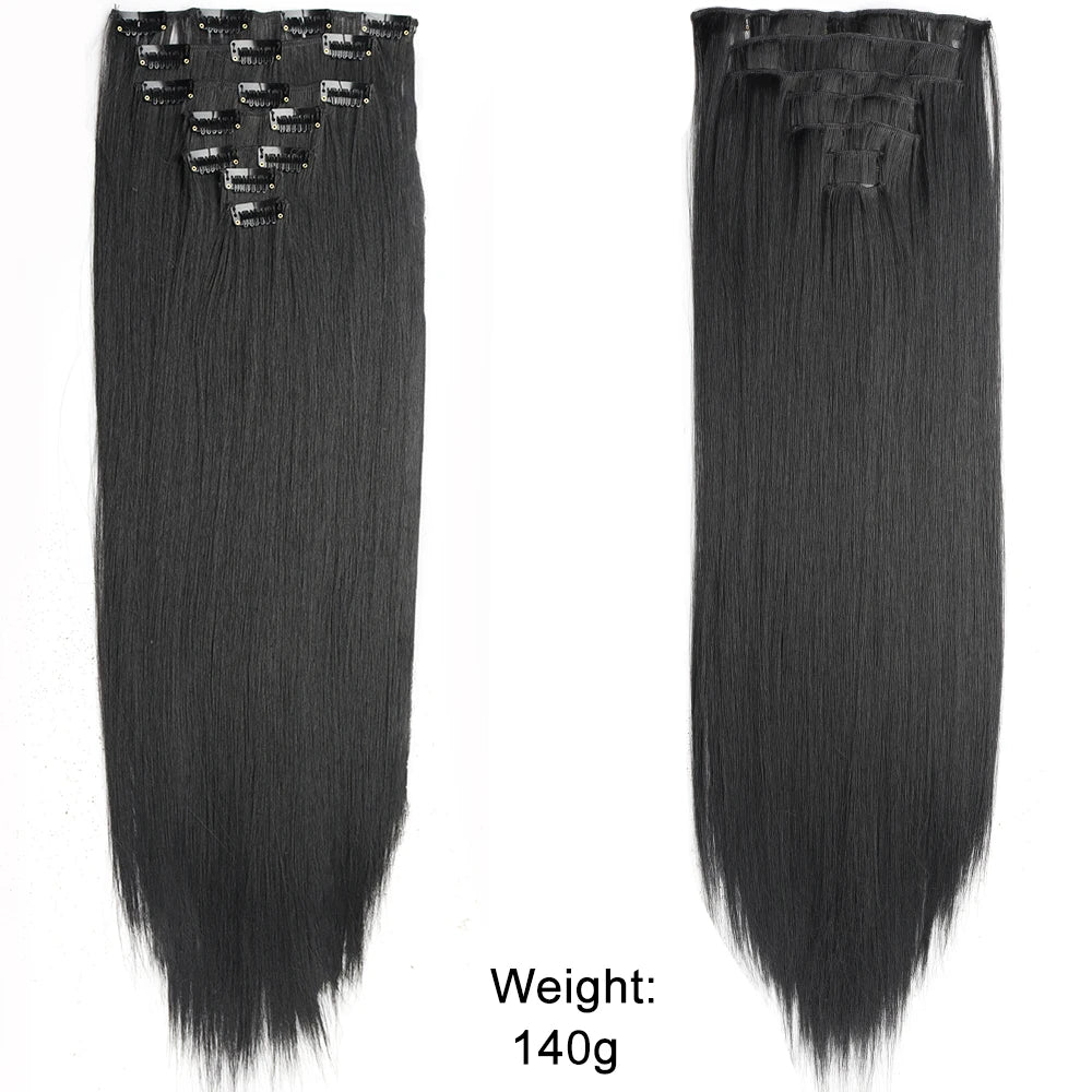 7Pcs/Set 16 Clips Hair Extension Black Long Straight Natural Hair Ombre Hairpiece Heat Resistant Fiber For Women Hairstyle
