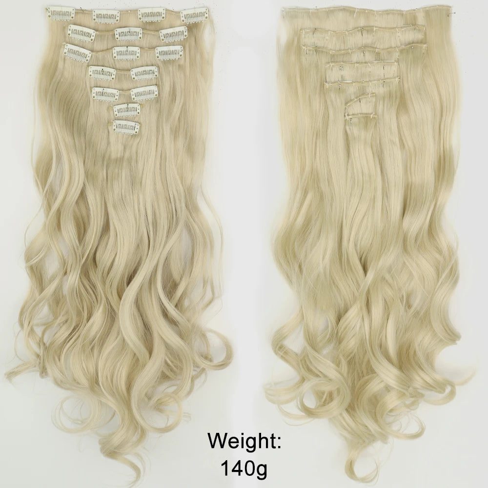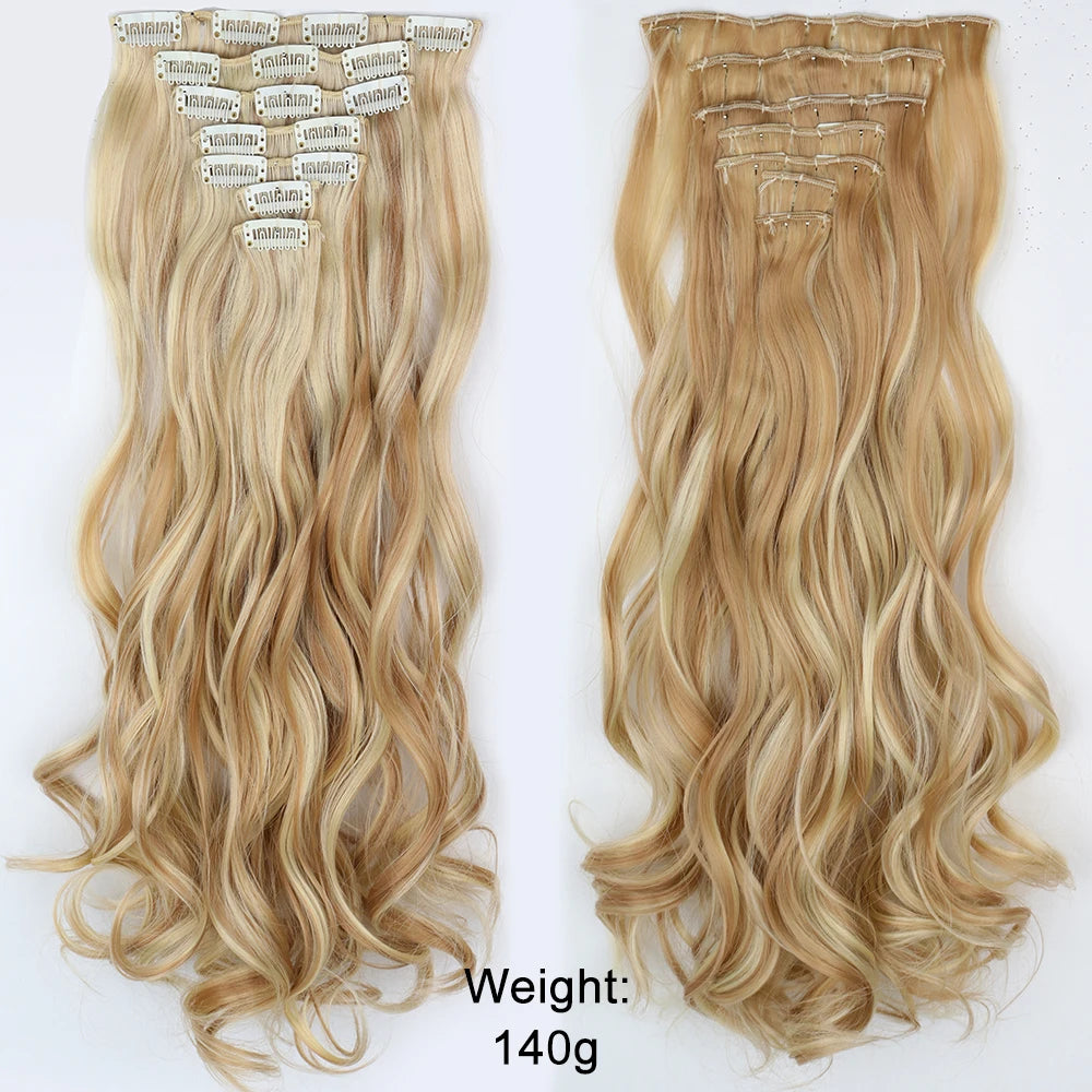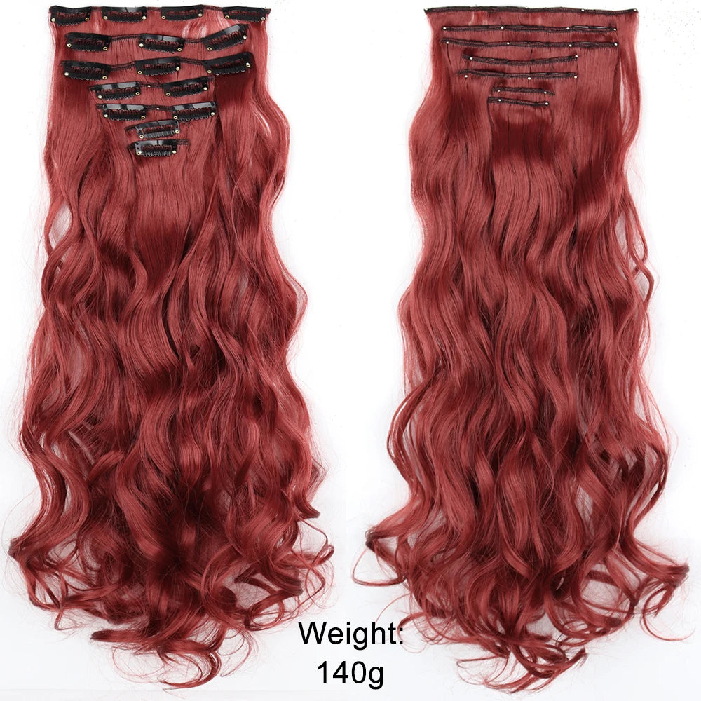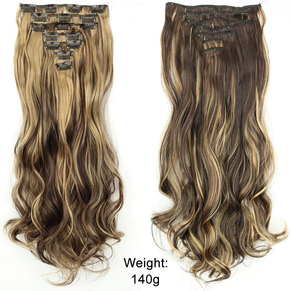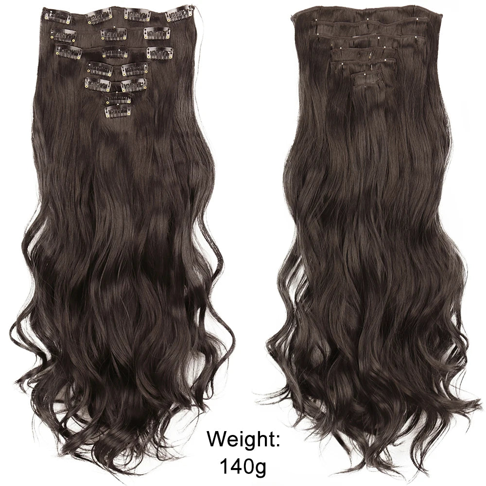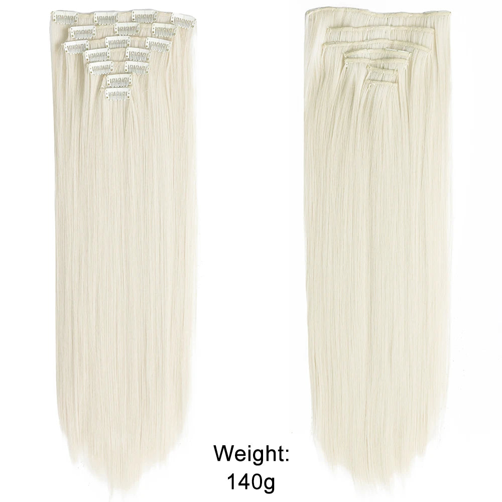 7Pcs/Set 16 Clips Hair Extension Black Long Straight Natural Hair Ombre Hairpiece Heat Resistant Fiber For Women Hairstyle