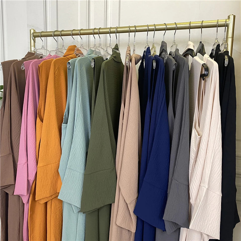 Abaya Women Muslim Long Dresses African Open Kaftan Dubai Turkey 2 Piece Set Luxury Islam Morocco Clothing Caftan Fashion Modest