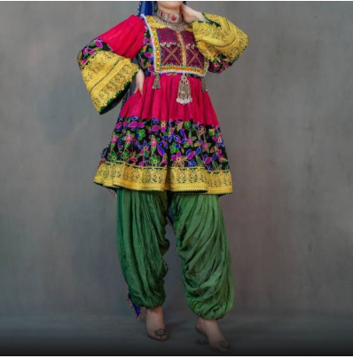 3-Piece Gand Afghani | Pink Afghan Dress With Golden Cherma Embroidery