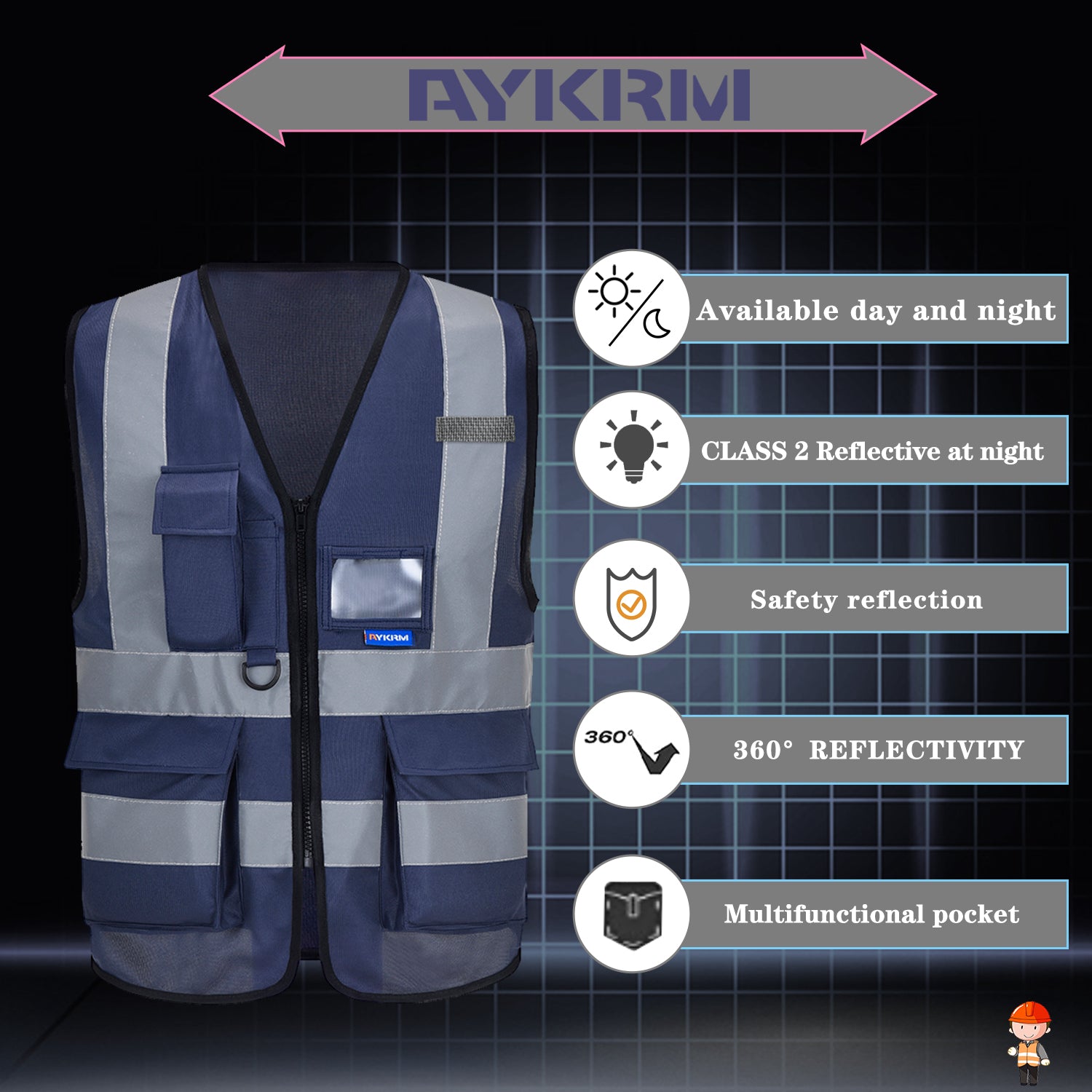 AYKRM 21 Colour (XS-8XL) Hi Vis Viz High Visibility Reflective Zip Pocket Security Waistcoats Jacket Workwear Vests