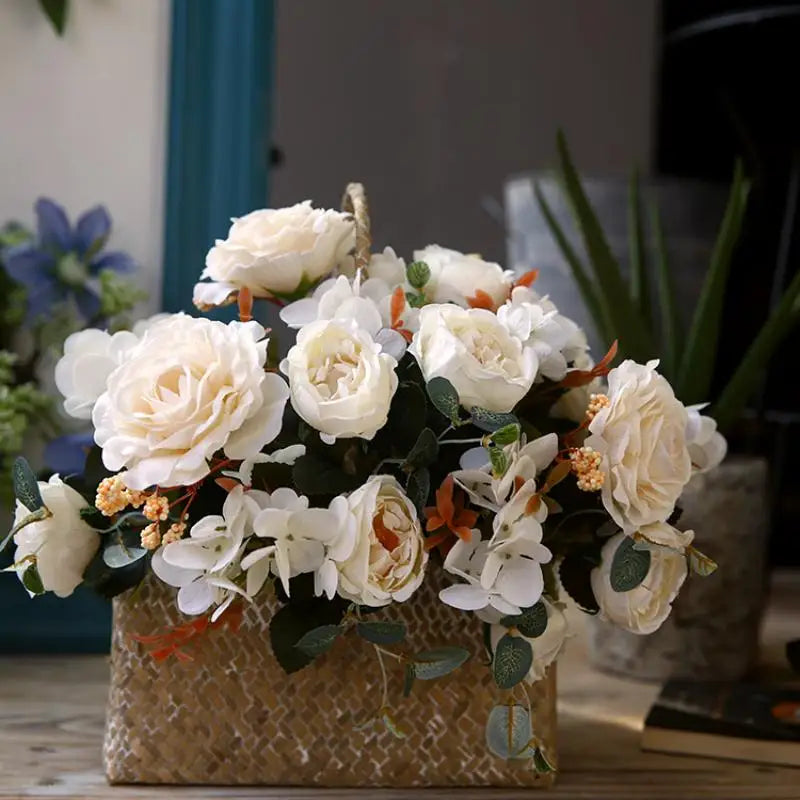 Retro Hydrangea Core Fake Peony Bouquet Simulation Wholesale Wedding Staircase Decorative Artificial Flowers Silk Flowers
