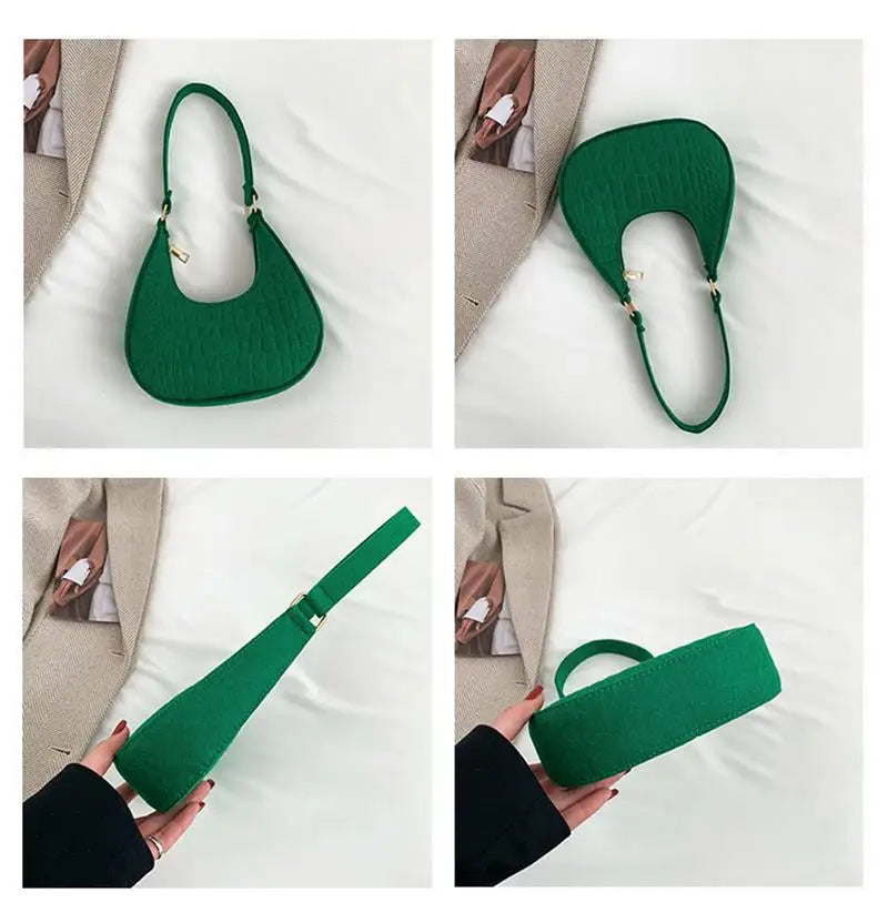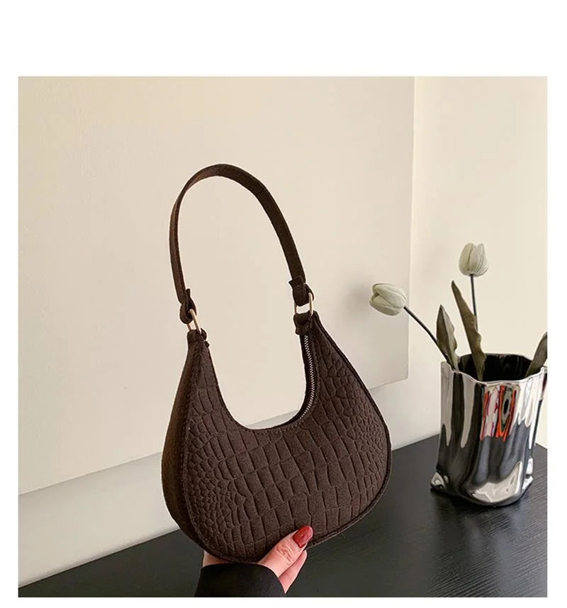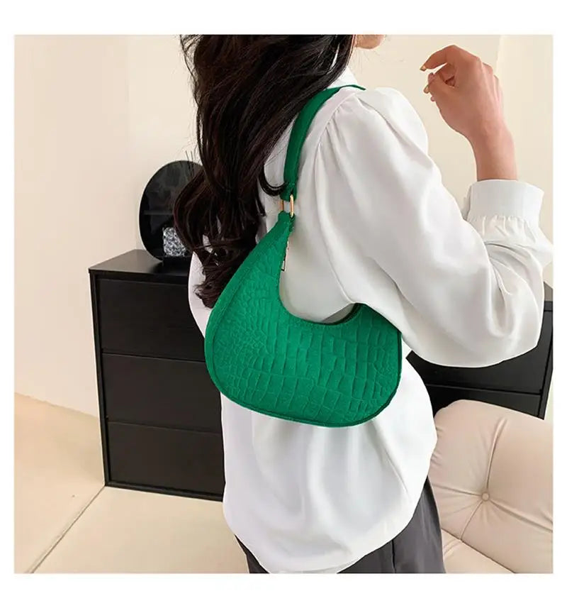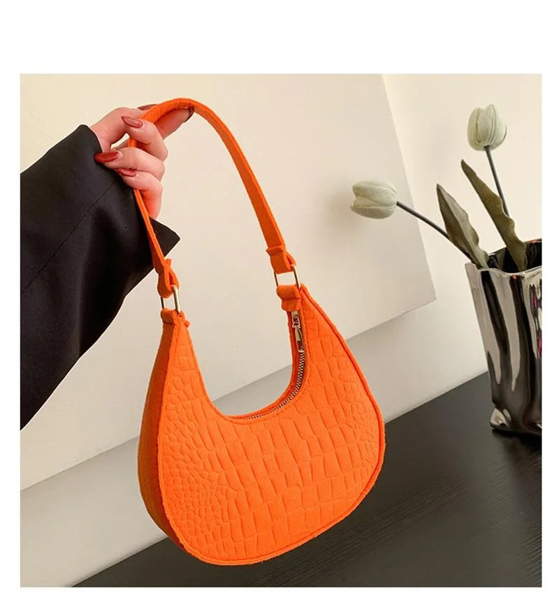 Retro Women Shoulder Bag Handbag Pure Felt Fashion Leisure Underarm Bag Crescent Saddle Bag For Ladies Advanced Armpit Bag