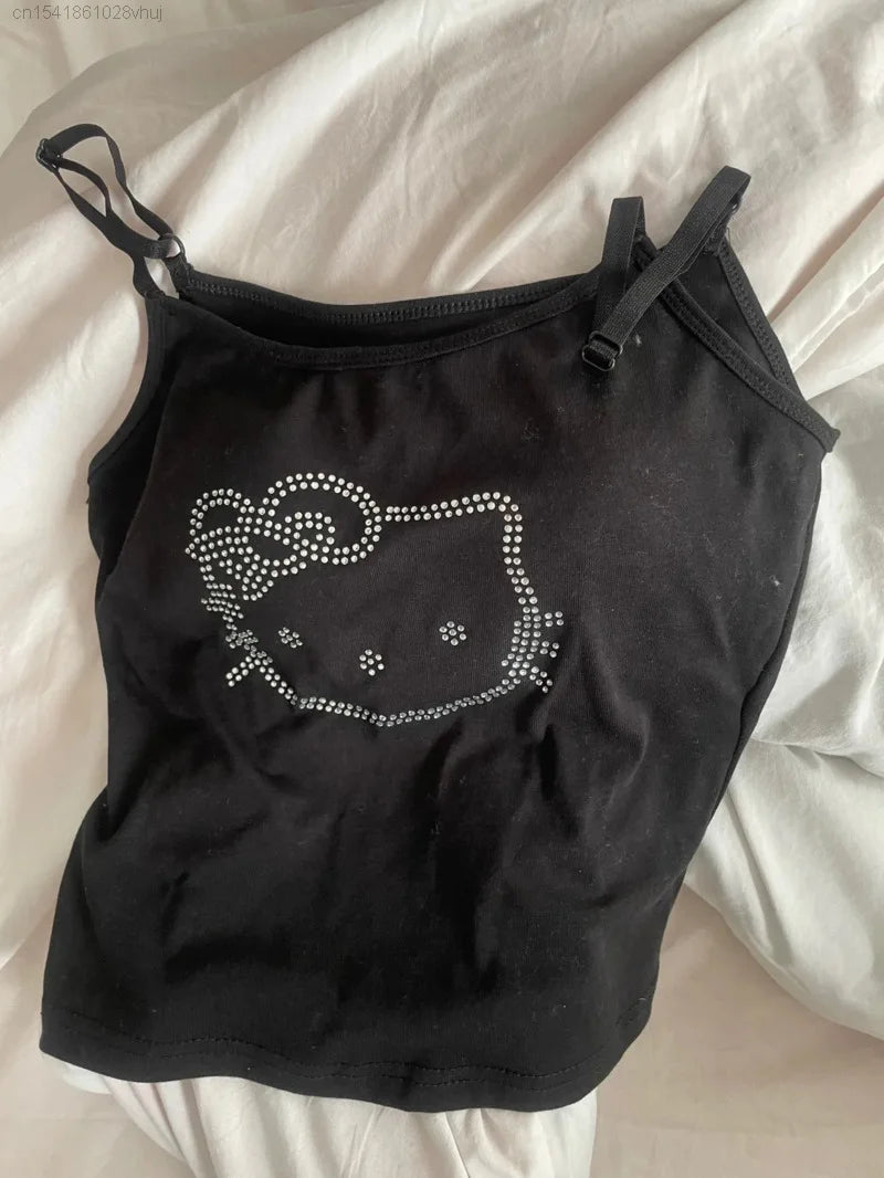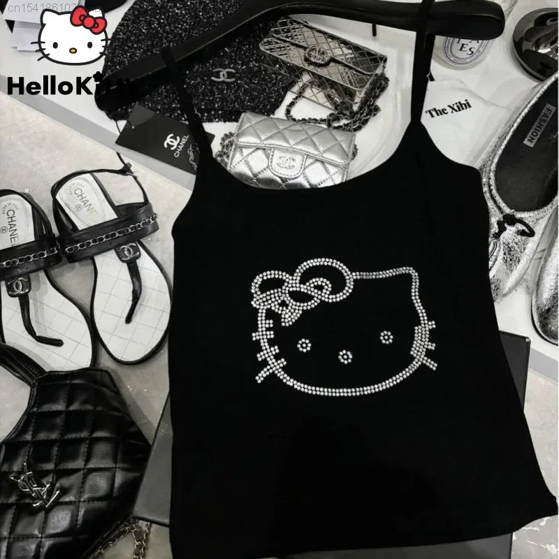 Sanrio Hello Kitty Diamond Tank Top With Bra Sexy Fashion Gothic Aesthetic Crop Top Y 2k Girls New Summer Youthful Woman Clothes
