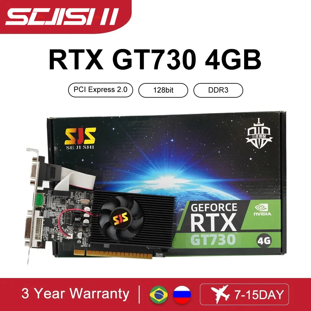 SEJISHI Video Card GeForce GT730 Display Vga Cards 2GB 4GB DDR3 128Bit Computer Graphics Card NVIDIA Game PC GT 730 HDMI DVI