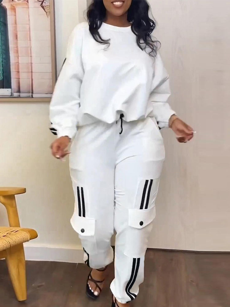 Sets Outifits 2023 Autumn Geometry Print Casual Top & Pocket Design Pants Set of Two Fashion Pieces for Women Tracksuits Female