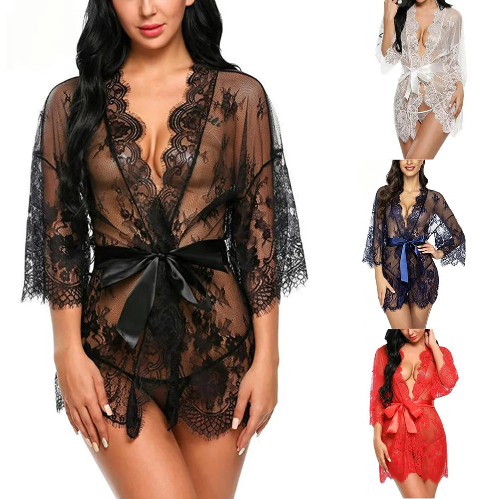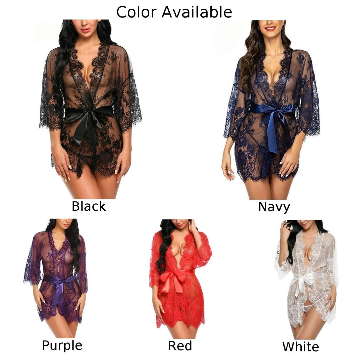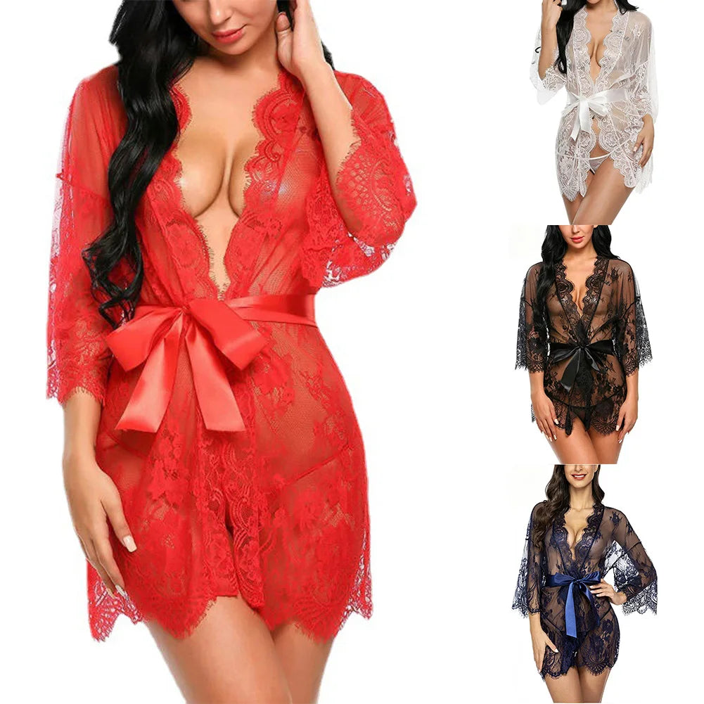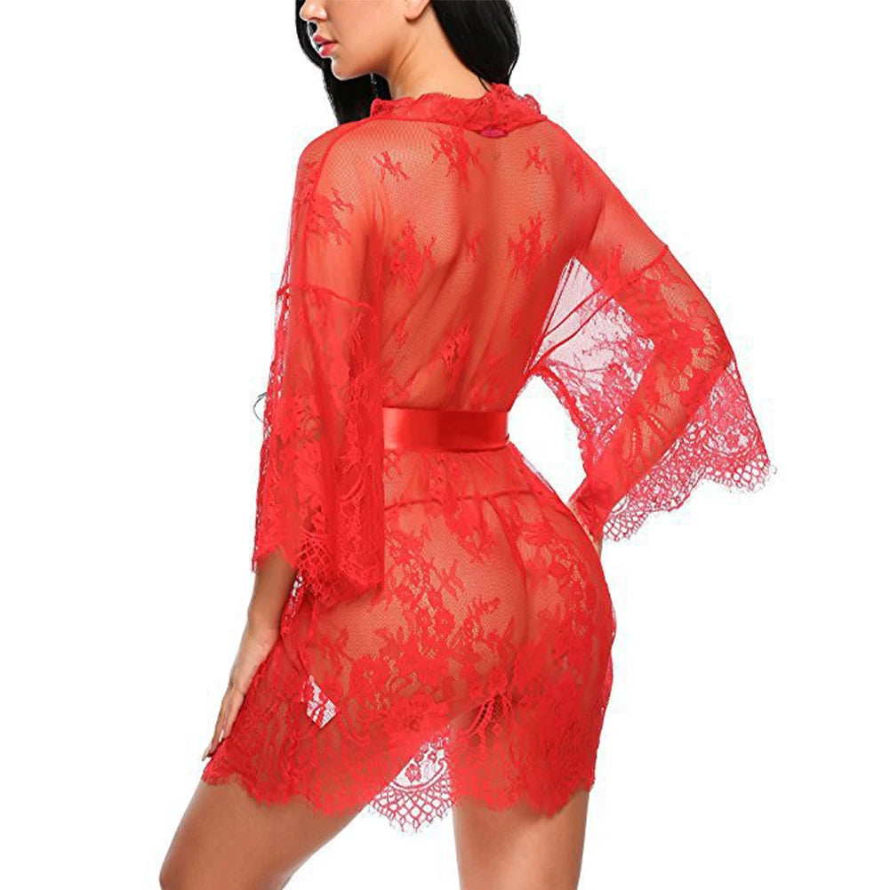 Sexy Lingerie Lace Nightgown Sleepwear Dress Robe Kimono for Women's Nightwear Collection with Adjustable Straps