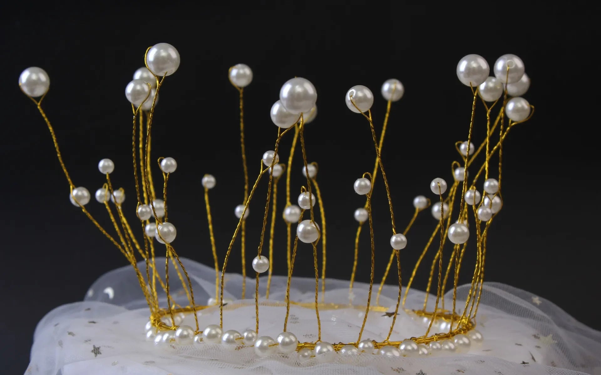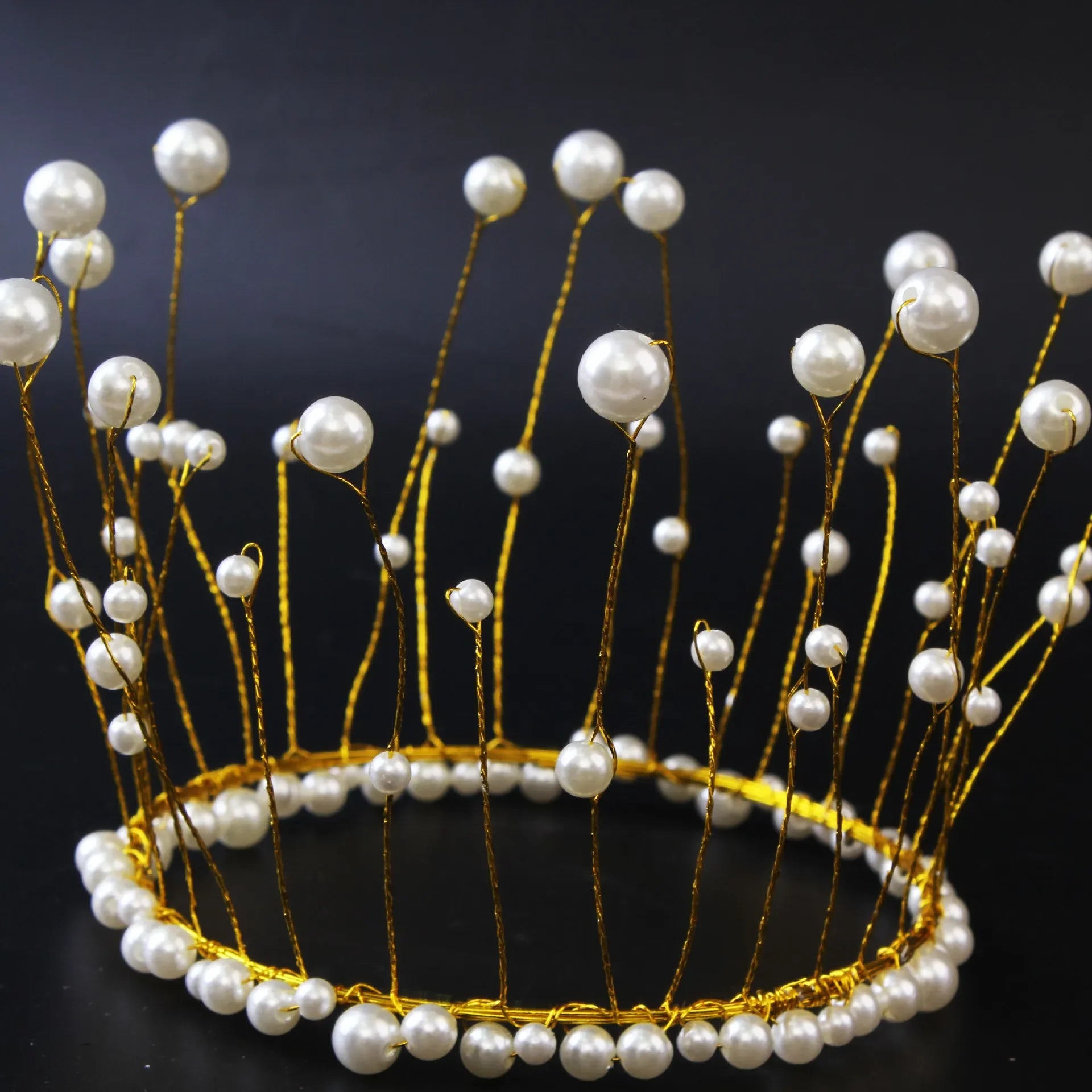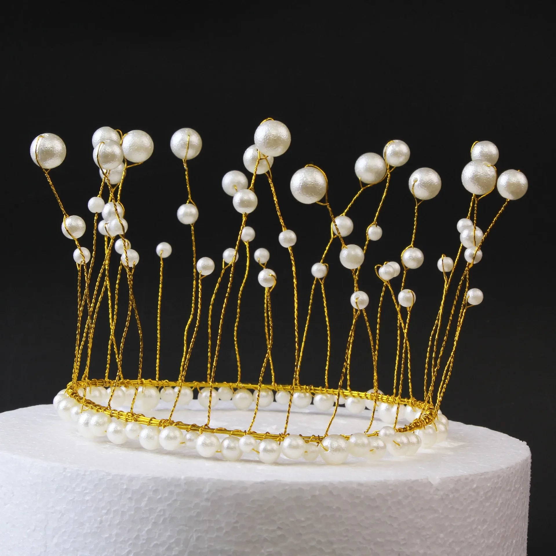 Shiny Handmade Pearl Princess Crown Cake Topper Wedding Decorating Bride and Groom Happy Birthday Hat Decoration